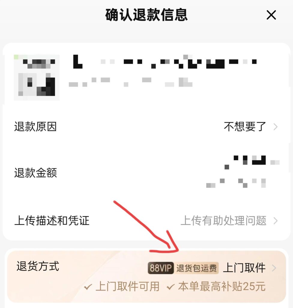 到货以后,在尝试发起退货时,发现“88VIP退货包运费”也是生效的: