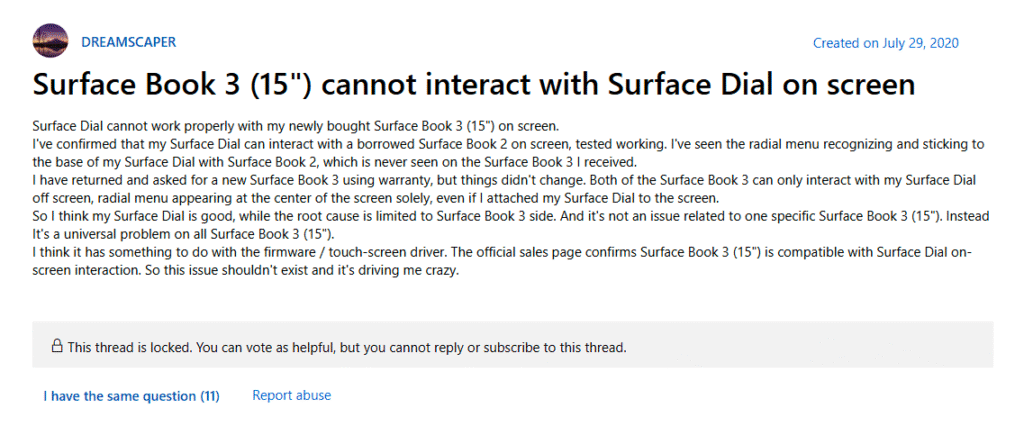 当然,这个问题后来不了了之了。官方后来决定放弃开发和跟进这个功能,并且选择修改Surface Book 3售卖页面上的声明,删除对Surface Dial on-screen支持的说明,来了结此事。因为Surface Book 3发布后不久,Surface Dial项目便被放弃了。