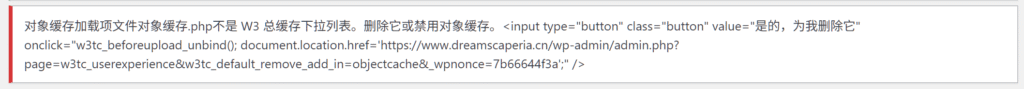 最让我无语的,是它还会在站点公共目录下创建和W3 Total Cache冲突的同名的object-cache.php,使得W3 Total Cache提示“对象缓存加载项文件对象缓存.php不是 W3 总缓存下拉列表,删除它或禁用对象缓存”: