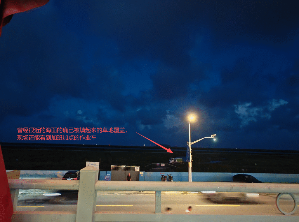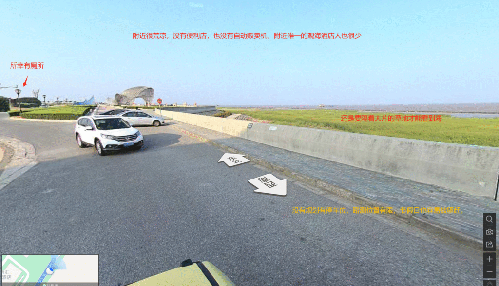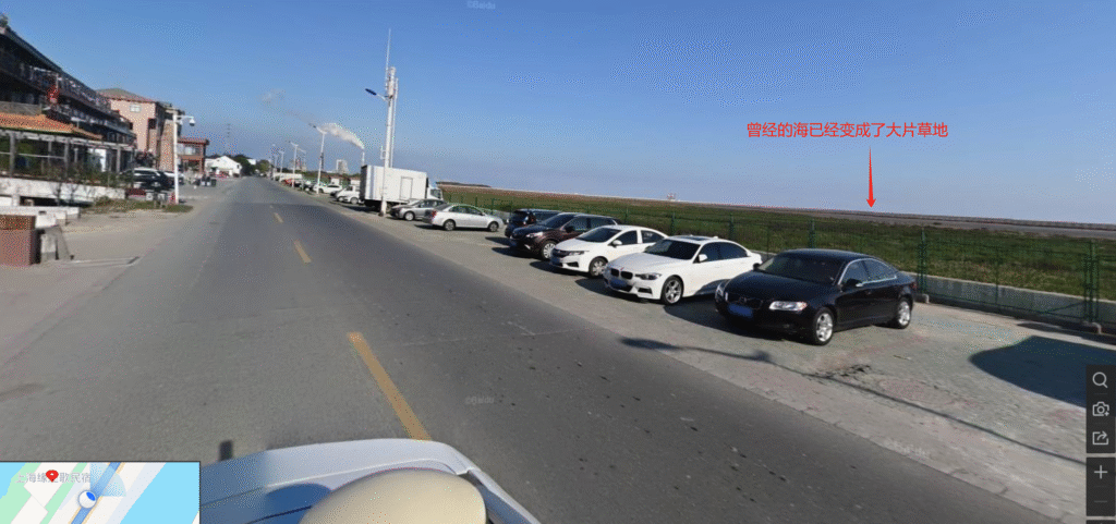 我想办法切换到2020年后的百度街景,只能遗憾地看到,曾经近在咫尺的海,已经被填成了大片的草地: