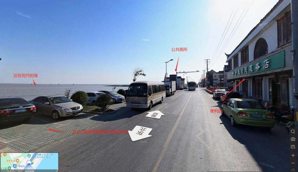 然后我结合百度街景,全图扫视上海的海岸线,还真被我找到了这么一处地方:金山嘴渔村!