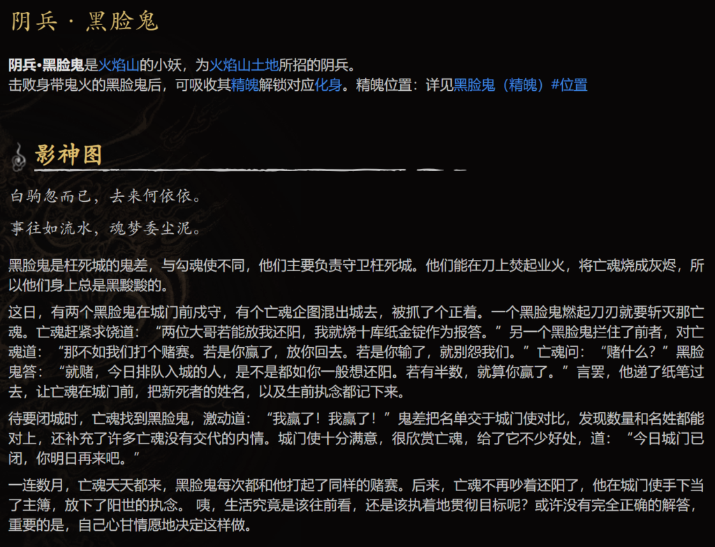 可在黑神话这里,这种笔调和笔力是几乎没有的。全部看下来,也就阴兵·黑脸鬼的影神图故事得到了吴承恩的真传,同时做到了这两点的。大家可以细品: